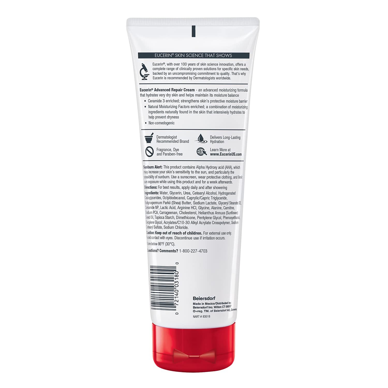 • Includes one (1) 8 ounce tube of Eucerin Advanced Repair Body Cream, Fragrance Free Body Moisturizer for Sensitive Skin
